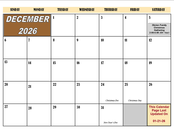 2026 Fall Calendar Months