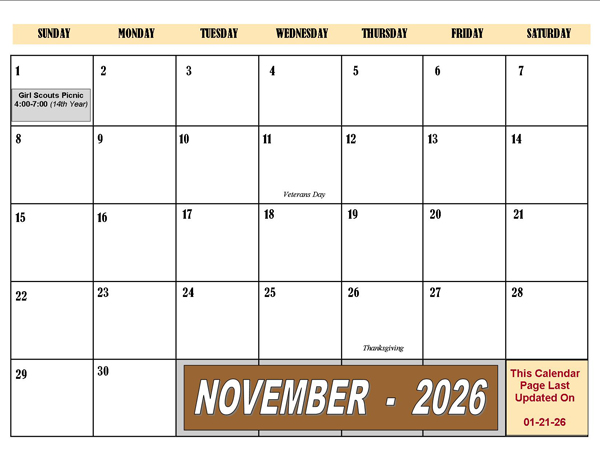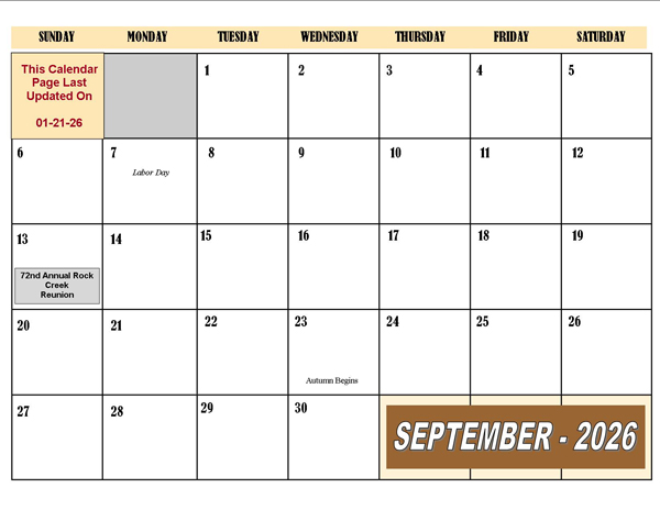 2026 Fall Calendar Months
